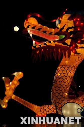 2009年2月9日(元宵節)拍攝的昆明市大觀公園的“彩龍戲月”景觀。(資料圖片)