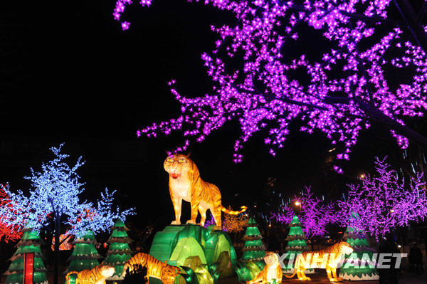 2月26日,西寧市區(qū)的“彩燈樹”與“虎園”相映成畫。 臨近元宵佳節(jié),西寧市各區(qū)、縣的彩燈展內(nèi)容豐富,造型各異。璀璨奪目的彩燈給高原古城帶來濃郁喜慶的節(jié)日氣氛。新華社記者侯德強攝