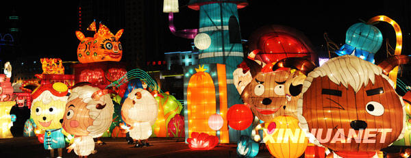 這是西寧市城西區(qū)的卡通動漫燈(2月26日攝)。 臨近元宵佳節(jié),西寧市各區(qū)、縣的彩燈展內(nèi)容豐富,造型各異。璀璨奪目的彩燈給高原古城帶來濃郁喜慶的節(jié)日氣氛。新華社記者侯德強攝 |