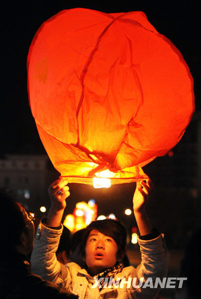 2月26日,西寧市民在空曠地帶燃放“孔明燈”。