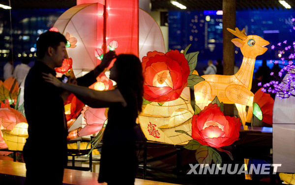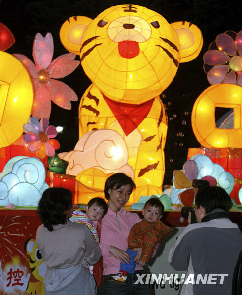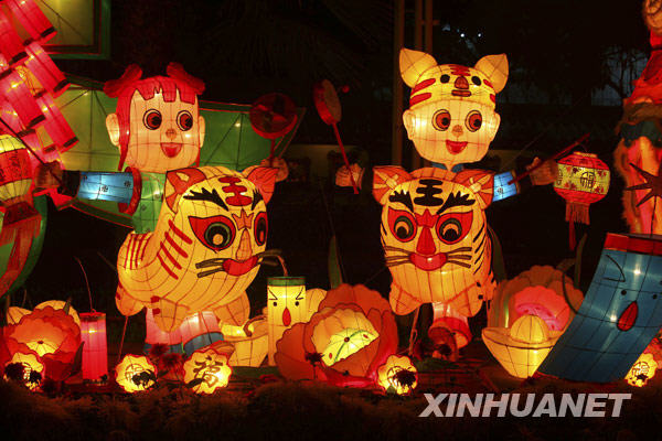 當晚,2010臺北燈節(jié)進行最后一次燈光調(diào)試,形態(tài)各異的花燈吸引了眾多市民前來賞燈。一年一度的臺北燈節(jié)將從2月26日至3月7日舉辦,陪伴市民歡度虎年元宵佳節(jié)。新華社發(fā)(吳景騰 攝)