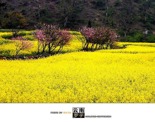 金色的山崗、金色的溝壑、金色的原野、金色的河堤、金色的花壇、金色的盆景,金色鋪設了羅平的山山水水,羅平成了金色的世界。